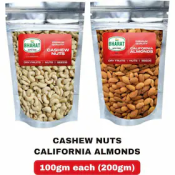 Bharat Super Foods Dry Fruits Combo Pack - California Almonds & Cashew Nuts W320 - 100gm each (200gm)