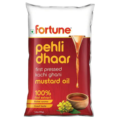 Fortune Pehli Dhar First Pressed Kachi Ghani Mustard Oil is a premium cold-pressed mustard oil made from the finest mustard seeds. The "Pehli Dhar" (first press) technique ensures the oil retains its natural flavor, aroma, and nutrients, making it ideal for traditional Indian cooking. Known for its robust taste and rich color, this oil enhances the flavor of pickles, curries, and marinades, while also offering numerous health benefits. So what are you waiting for? Go ahead and buy this product online today!
