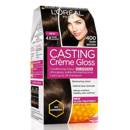 L'Oreal Paris Casting Creme Gloss Ammonia Free Hair Colour, Dark Brown (400) (87.5 g + 72 ml)