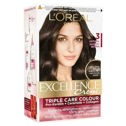 L'Oreal Paris Excellence Creme Hair Colour, Natural Darkest Brown (3) (72 ml + 100 g)