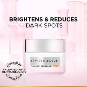 L’Oréal Paris Glycolic Bright Day Cream with SPF 17, 15ml |Skin Brightening Cream with Glycolic Acid that Visbily Minimizes Spots & Reveals Even Toned Skin