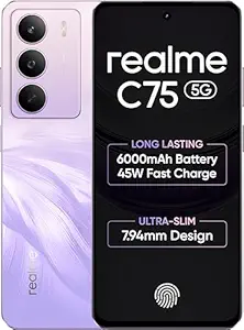 Realme C75 5G (Purple Blossom, 4GB RAM, 128GB Storage) | Dimensity 6300 Processor | 6000mAh Battery | 45W Fast Charging | Up to 2TB Expandable | 32MP Rear Camera | 8MP Selfie | 6.67" 120Hz Display
