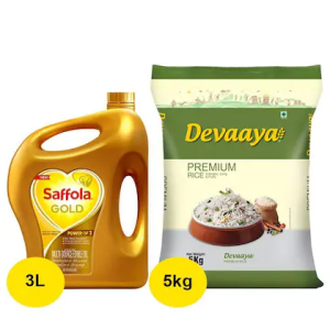 Saffola Gold Rice Bran And Corn Based Blended Oil 3 L + Daawat Devaaya Premium Rice 5 kg