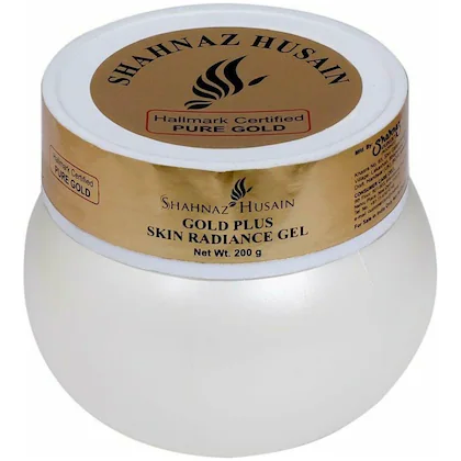 # Shahnaz Husain Gold Plus Radiance Gel 200GmNature’S Gold Skin Radiance Gel Is A Unique Formula Which Consists Of 24 Carat Pure Gold Which Helps In Slowing Down The Visible Signs Of Aging. The Gold Skin Radiance Gel Helps To Revitalise And Rejuvenate The Skin Surface, Making The Skin Looking Younger And More Radiant. * This radiance gel consists of 24 carat pure gold * It is an anti-ageing product * This Skin Radiance Gel slows down the visible signs of aging * It revitalises and rejuvenates the skin surface * The regular use of this gel makes the skin look younger and more radiant. * Net wt. 200gm * Colour — Light Yellow Color with visible flakes of 24 carat gold * This gold skin radiance is gel based in texture * Apply the Gold Skin Radiance Gel all over face. Then use a small amount of moisture enhancer and rub gently into the skin.#### INGREDIENTSAqua (Water), Rosa centifolia Flower Water, Glycerin, Sorbitol, Aloe barbadensis Gel, Saccharide Isomerate, Carbomer, Aminomethyl Propanol, Mel (Honey), Panthenol, Methylparaben, Potassium Sorbate, Propylparaben, 24 Carat Gold Leaf, Tetrasodium EDTA.