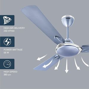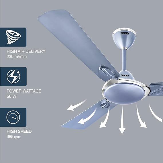 USHA Super Striker 1200mm Energy Saving High Speed Scratch & Dust Resistant Decorative Ceiling Fan |1star| ISI Certified ||Suva Grey|