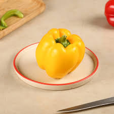 Yellow Capsicums are glossy, smooth-skinned, and their thik walls enclose a large hollow and segments which their seeds are attached to. They are milder in taste than green capsicum, and so are known as sweet peppers (have a slighly fruity taste).